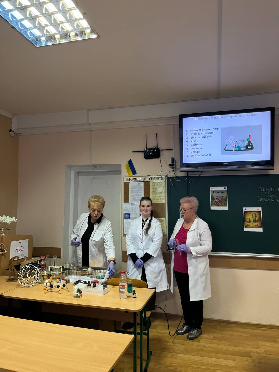 Найбільший інтерес викликала практична частина заняття, під час якої студенти виконували досліди з визначення наявності вуглеводів (моносахаридів, дисахаридів та полісахаридів) у різних продуктах. У ході експериментів вони переконалися, що навіть повсякденні харчові продукти можуть бути цінним матеріалом для навчальних і наукових досліджень, а знання з хімії та біології мають безпосереднє практичне значення.