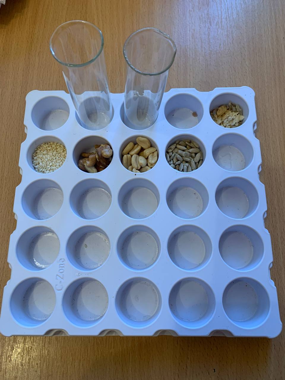 Найцікавішою стала практична частина заняття, під час якої студенти виконували досліди з визначення наявності жирів і білків у різних харчових продуктах. Зокрема, вони спостерігали характерні ознаки жирів (жирні плями, утворені від добутих жирів з насіння природних культур, розчинність твердих і рідких жирів у різних рідинах та за різних умов, реакції з барвниками) та проводили біуретову та ксантопротеїнову реакції для виявлення білкових молекул, а також їх денатурацію при дії різних чинників. У ході експериментів студенти переконалися, що навіть традиційні продукти харчування можуть слугувати об’єктом наукового дослідження, а знання з біології та хімії мають важливий практичний застосунок.