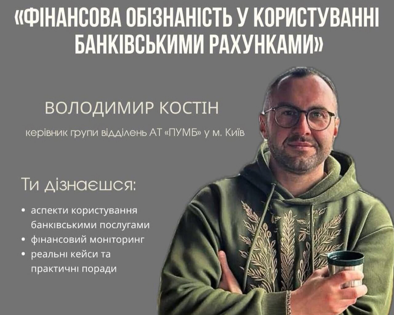 Запрошуємо на зустріч з Володимиром Костіним - керівник групи відділень АТ «ПУМБ»