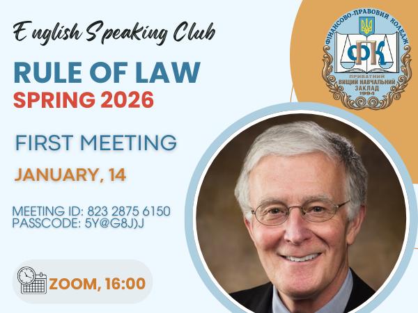 We are pleased to announce that on Wednesday (February, 4, 2026, at 4:00 PM), the 4th meeting of the Rule of Law course, taught by Professor Christopher Kelly, will start for students of Financial-Legal College.Students of the College of Finance and Law will have the opportunity to participate remotely via Zoom (on Wednesdays).